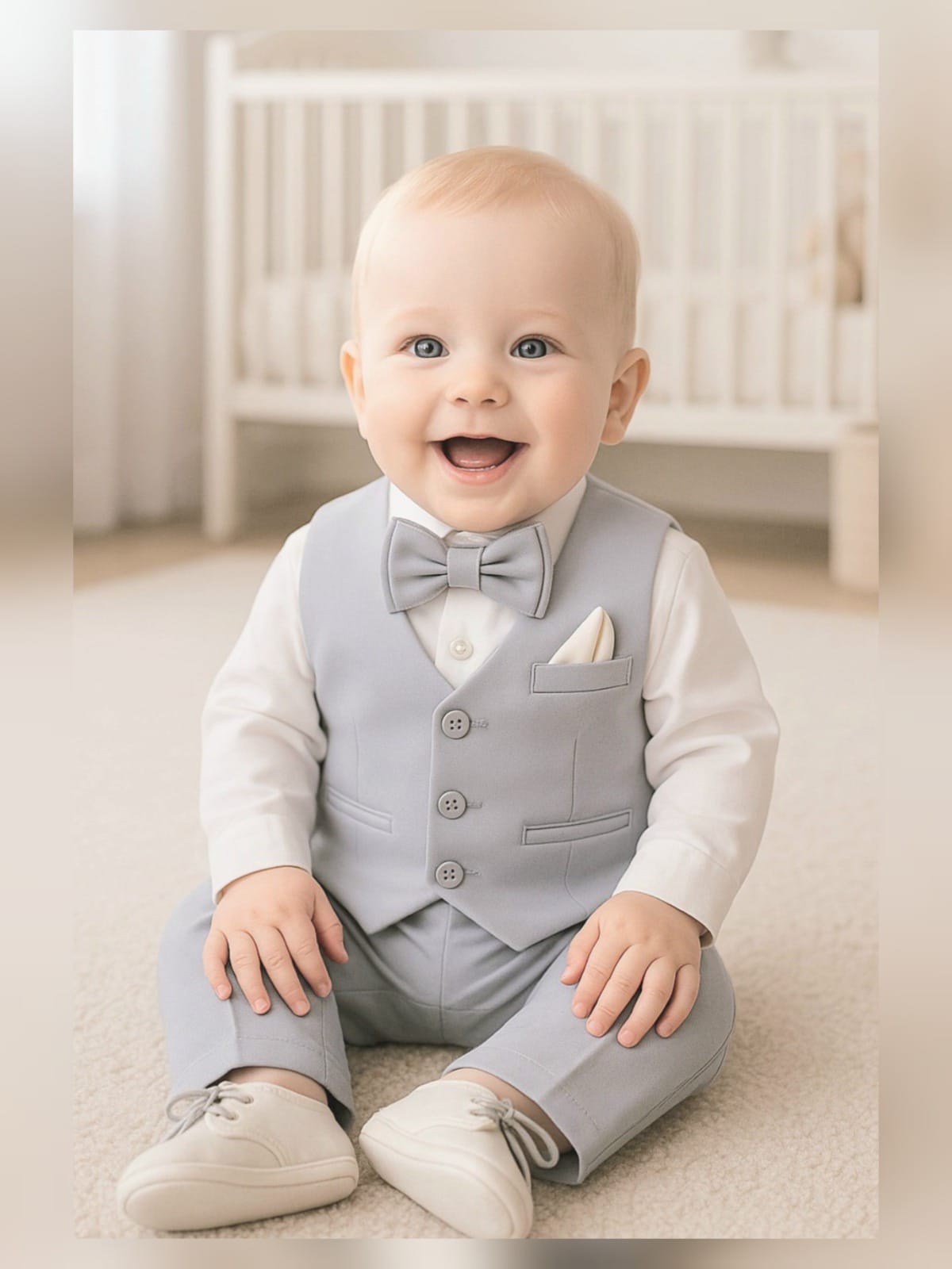 U ovom kompletu, vaš mali gospodin će zasjati na dan krštenja.