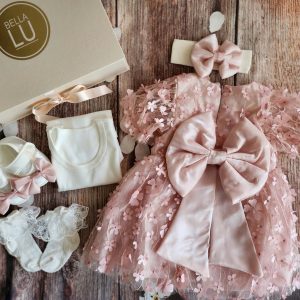 Stvorite nezaboravne trenutke s našim svečanim kompletićem za djevojčice – savršenim odabirom za posebne prigode.Ovaj elegantni komplet uključuje prekrasnu haljinu i trakicu za glavu te cipelice. Izrađen je od najfinijih materijala, uključujući čipku, mekani til i antialergijsku podstavu.Svaki komad ovog kompletića pažljivo je oblikovan kako bi pružio udobnost i sofisticiranost za vašu malu princezu.Oplemenjeni delikatnim detaljima, ovi elegantni komadi zajedno stvaraju izgled prikladan za važne trenutke poput krštenja ili drugih svečanih događanja.Učinite svaki poseban trenutak još sjajnijim s našim svečanim kompletićem – savršenim za stvaranje predivnih uspomena.Vaša mala princeza će zablistati u ovom čarobnom kompletu, stvorenim s ljubavlju prema detaljima.Komplet ne dolazi u ukrasnoj kutiji.