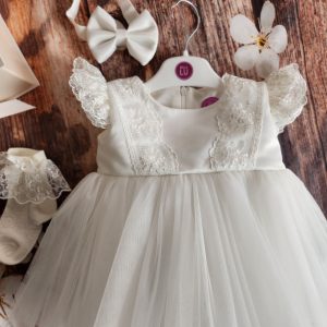 Stvorite nezaboravne trenutke s našim svečanim kompletićem za bebe – savršenim odabirom za posebne prigode. Ovaj elegantni komplet uključuje prekrasnu haljinu, trakicu za glavu, nježne cipelice za malene nehodače, udoban bodi i meke štramplice.